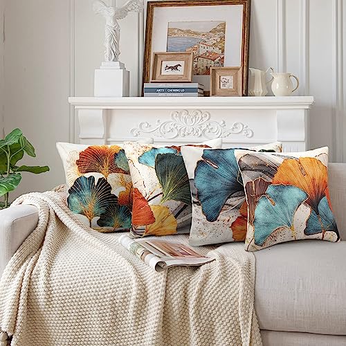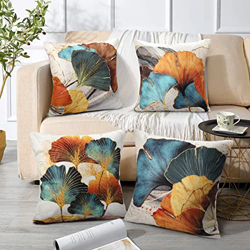 【Couleurs Fantastiques】Les taies d’oreiller avec des motifs de ginkgo bleu sarcelle et doré,L’impression sur les taies d’oreiller est très claire et vive. Les couleurs sont très riches et vibrantes. Cette belle housse de coussin est ajoutera à coup sûr de la fraîcheur et de la vitalité à votre intérieur cosy et gagnera les impressions de vos invités.