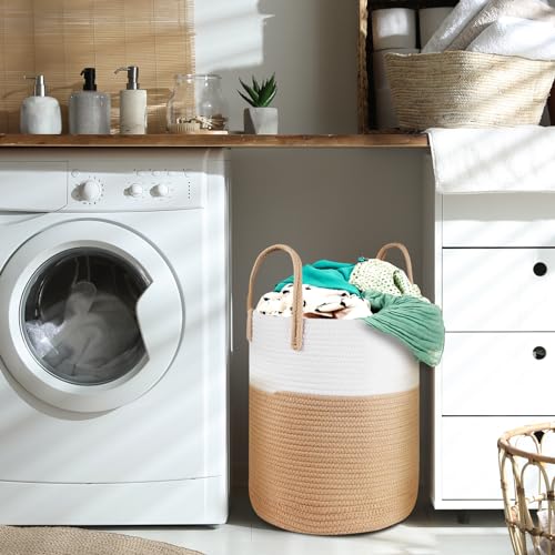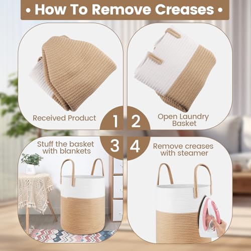 ➠MATIÈRE EN COTON DE HAUTE QUALITÉ : Le panier a linge est fabriqué à partir d’une corde en coton durable et de coutures de haute qualité pour garantir sa durabilité. Le matériau en coton doux et sûr permet à vos objets de bien respirer.