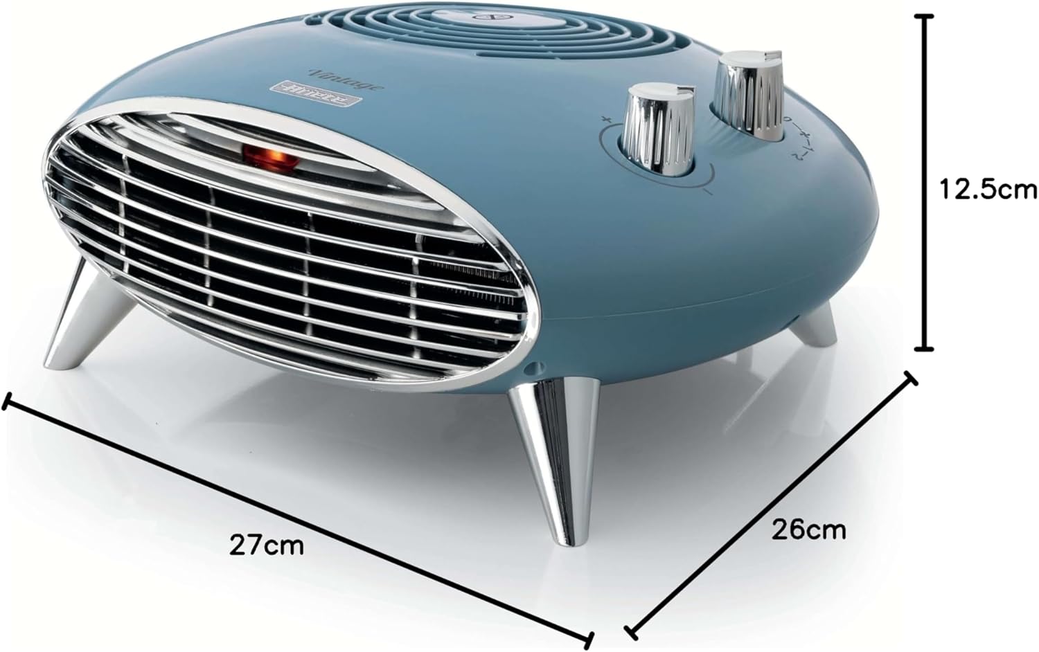 Design : Grille et pieds chromés avec ventilateur en métal