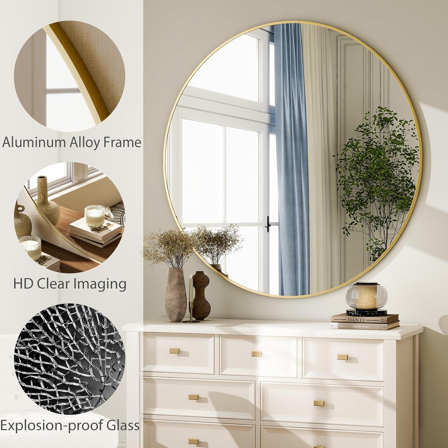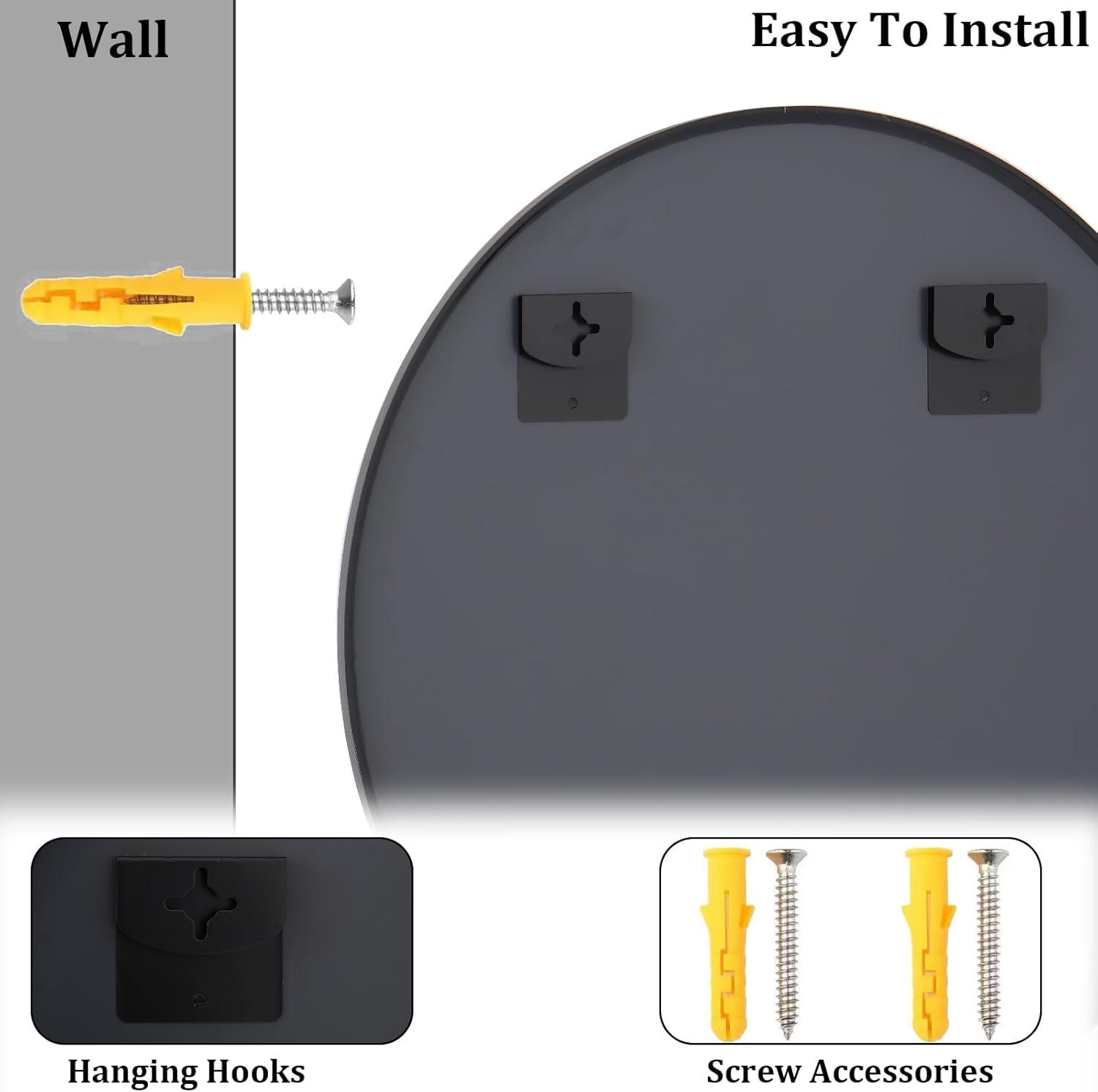 Facile à installer et polyvalent en placement : ces miroirs ronds pour murs sont livrés avec des crochets de suspension prêts au mur et des vis d’extension incluses, offrant un placement flexible, soit solidement monté ou appuyé gracieusement contre une surface. Le grand miroir rond s’adapte parfaitement dans les salles de bains, les couloirs ou les chambres, ce qui rend la décoration plus simple que jamais