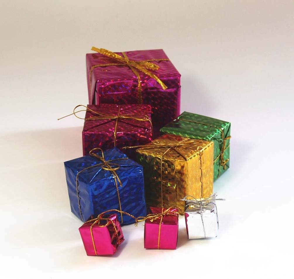 Boîte- en mousse de Noël Mini boîtes brillantes ornements pièce maîtresse de paquet miniature emballé dans une feuille métallique pour pendentif suspendu intérieur extérieur d’arbre de Noël