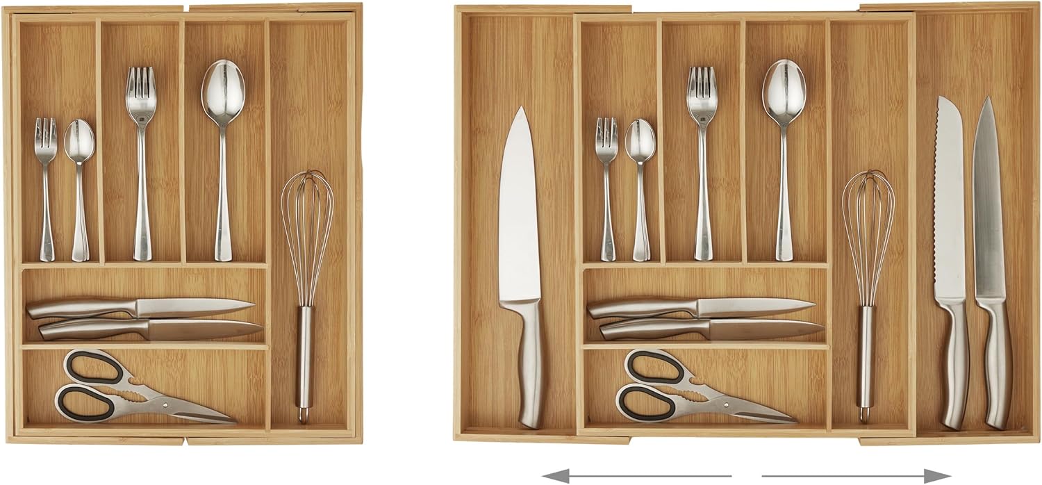 Extensible: Range-couvert bambou avec 5 compartiments principaux et 2 extensibles – Largeur variable