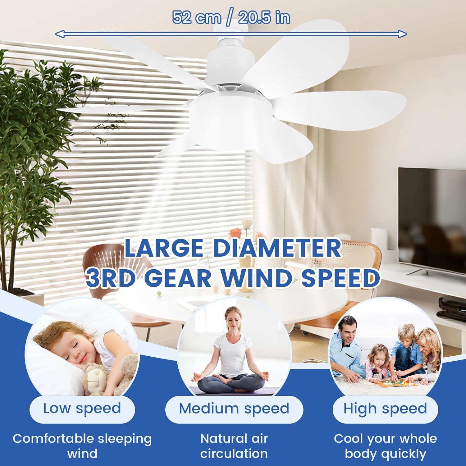 【Facile à installer】 : Contrairement aux ventilateurs de plafond traditionnels, l’installation de ce ventilateur de plafond télécommandé est aussi simple que de visser une ampoule, transformant votre espace en une configuration entièrement sans fil. Il est compatible avec la plupart des douilles d’ampoules E27 et est livré avec une rallonge de douille et des pales de ventilateur amovibles, faciles à installer et à transporter.