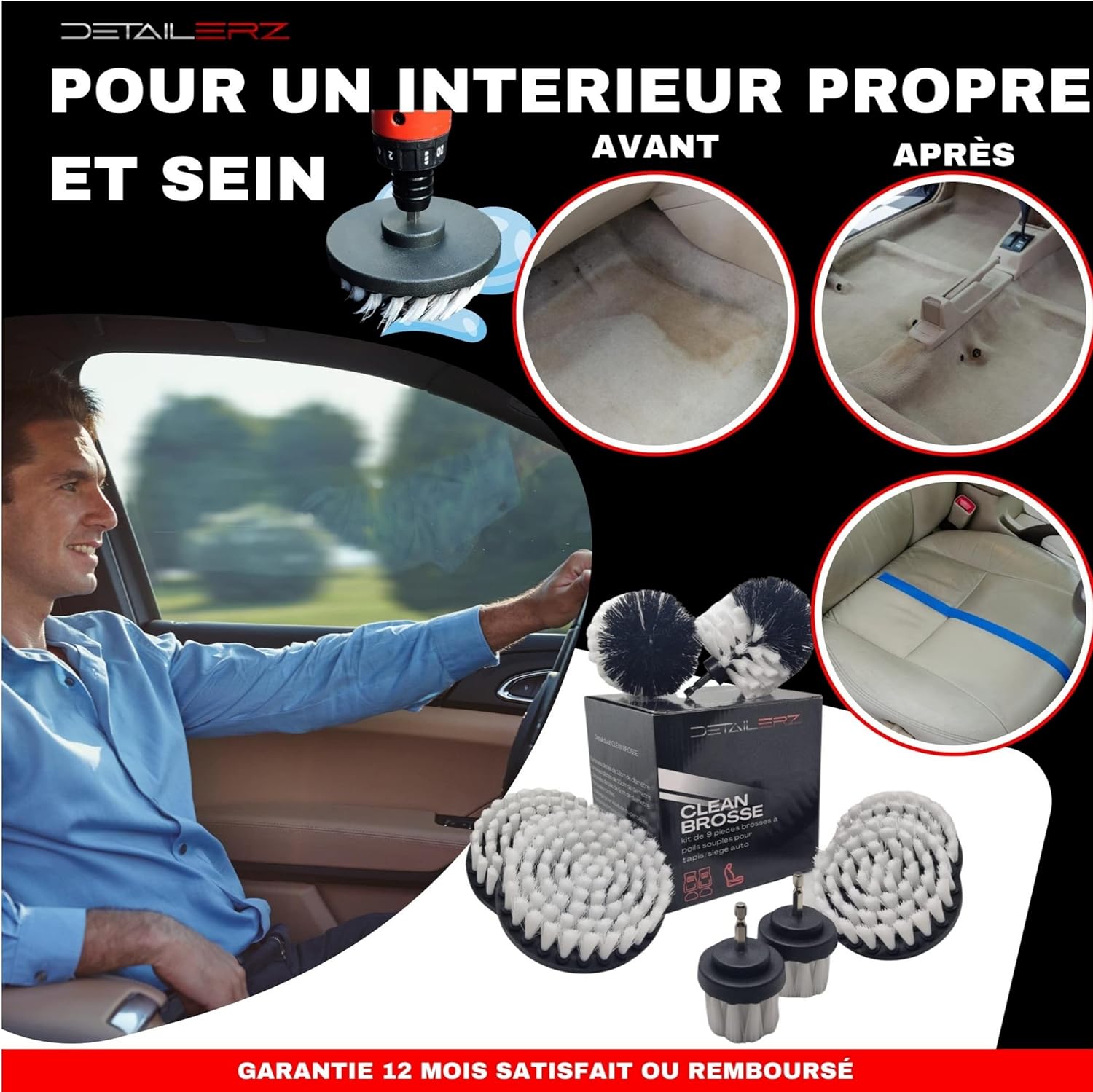 Vous êtes à un clic de pouvoir accéder à la puissance du kit CLEAN BROSSE pour un nettoyage voiture en profondeur de tous vos tapis moquette sièges, Il ne vous reste plus qu’à ajouter au panier ce produit et le recevoir très rapidement directement chez vous pour profiter de votre detailing auto.