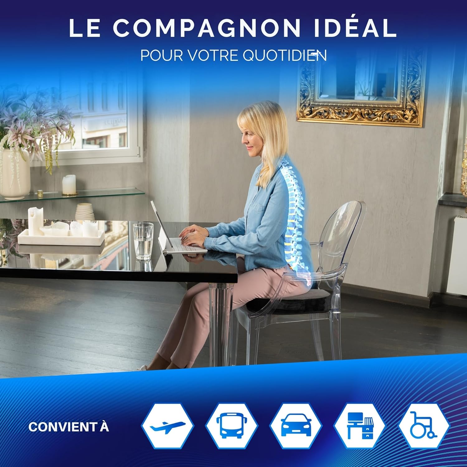 SOULAGEMENT DU COCCYX & DE LA SCIATIQUE – La découpe ergonomique réduit la pression sur le coccyx et les os fessiers, apportant confort et meilleure posture lors de longues périodes assises.