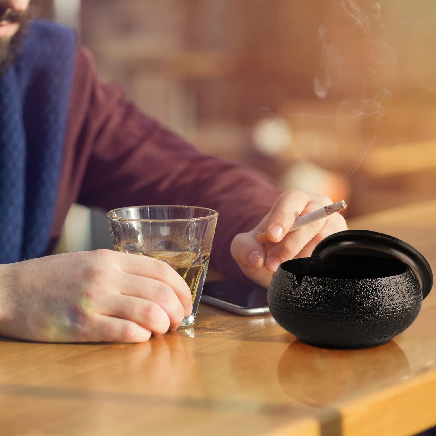 MULTIFONCTIONNEL ET ÉLÉGANT : Ce cendrier allie un beau design à une fonctionnalité pratique. Il s’adapte parfaitement à tous les styles d’intérieur, ajoutant une touche vintage au salon, à la chambre ou au bureau. Le cendrier multifonctionnel avec couvercle convient non seulement à l’extérieur, mais aussi à l’intérieur. Il est parfait pour les bureaux, les bars, les cafés, les hôtels, les restaurants et les fêtes.