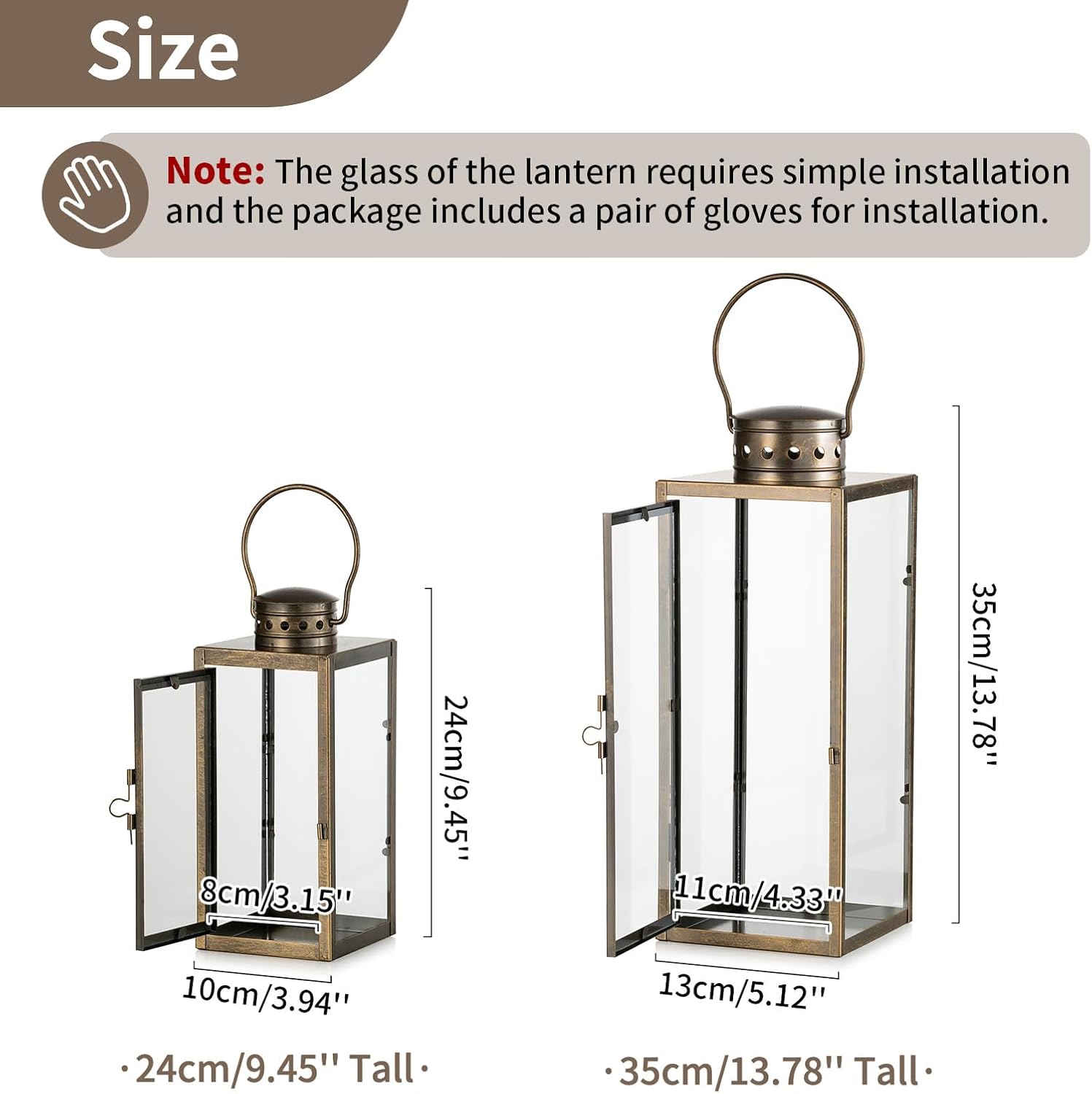 【Détails De La Taille】Small candle lantern height : 24cm/9.4 » , the base diameter is 10cm/3.9 » and the width of the entrance is 8cm/3.1 ». Grande lanterne à bougie : 35cm/13.8 », le diamètre de la base est de 13cm/5.1 » et la largeur de l’entrée est de 11cm/4.3 ». De taille parfaite pour être accrochée sur votre porche ou votre patio, elle est également idéale pour être placée sur une cheminée, une étagère ou une table de chevet afin de créer une ambiance chaleureuse.