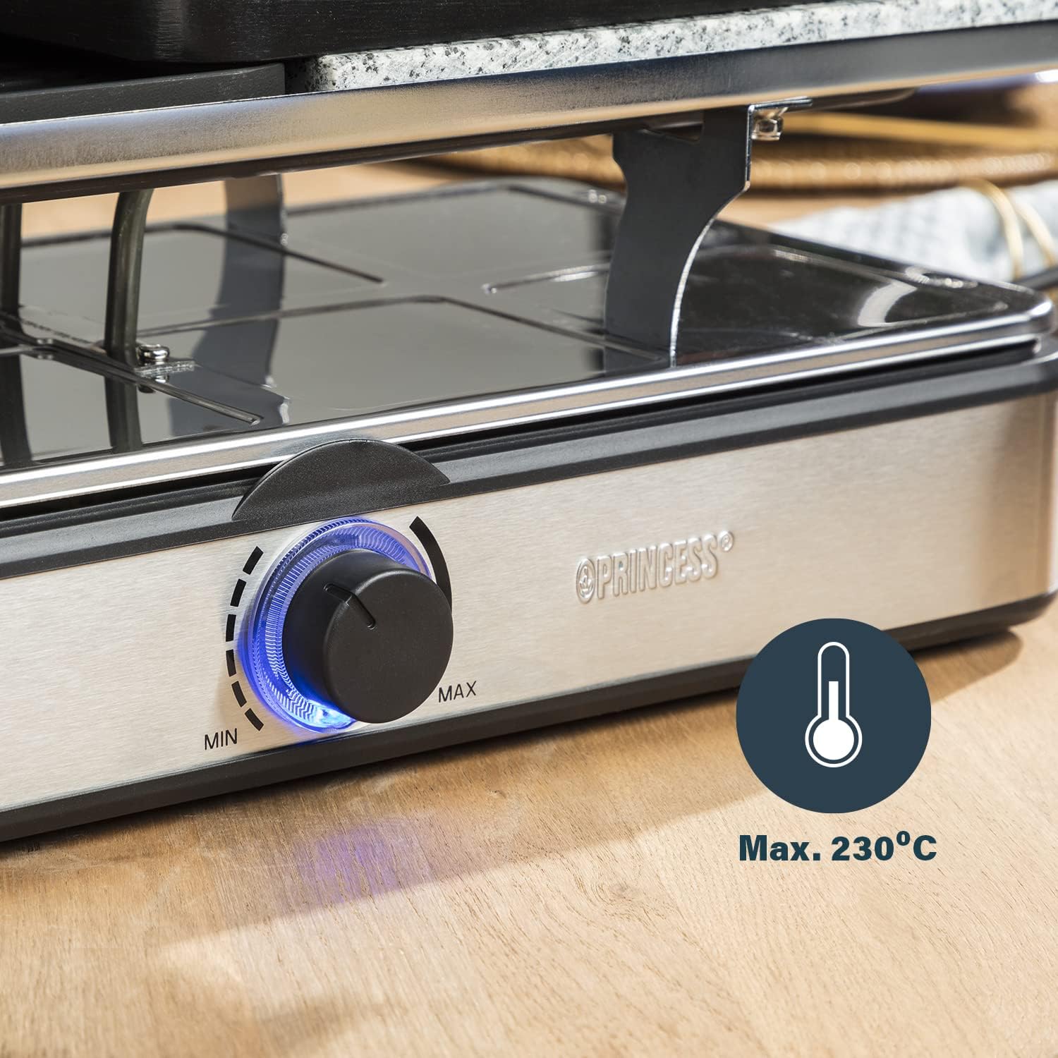 Profitez d’un repas gourmand en famille ou entre amis avec cet appareil à raclette Princess Deluxe 8 pour 8 personnes.