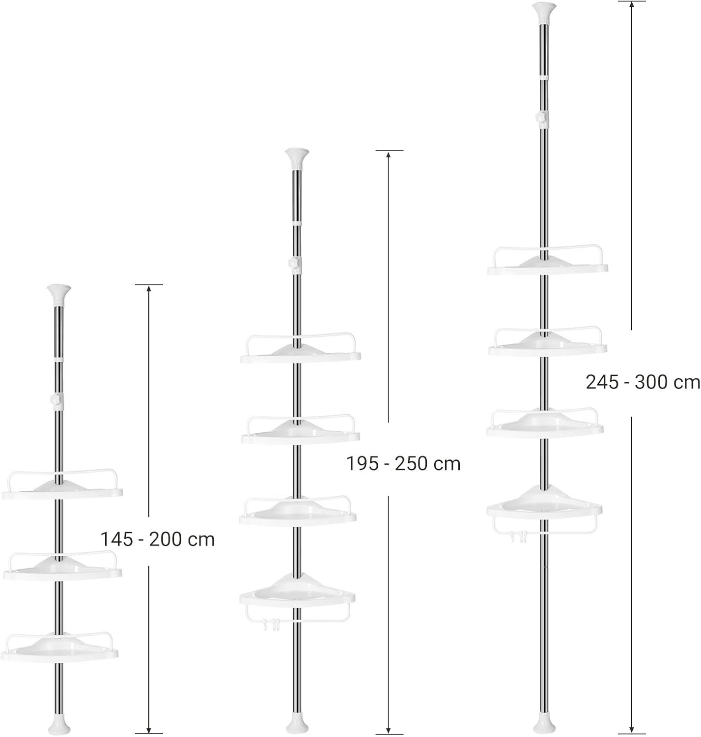 [Convient à différentes hauteurs de plafond] Cette étagère de douche est réglable de 95 à 300 cm pour s’adapter à différentes hauteurs de plafond