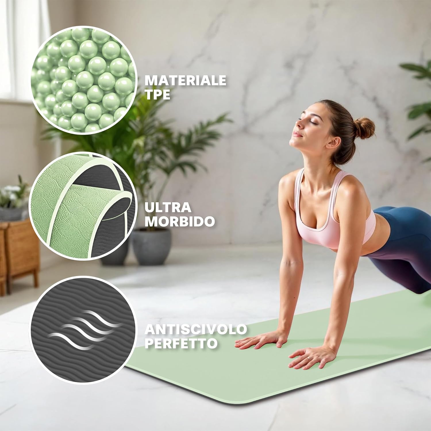 Nos tapis de yoga sont entièrement fabriqués en caoutchouc TPE naturel, non toxique et inodore. Le matériau TPE a une densité de mousse plus élevée et reste toujours flexible même après de longues périodes d’utilisation.