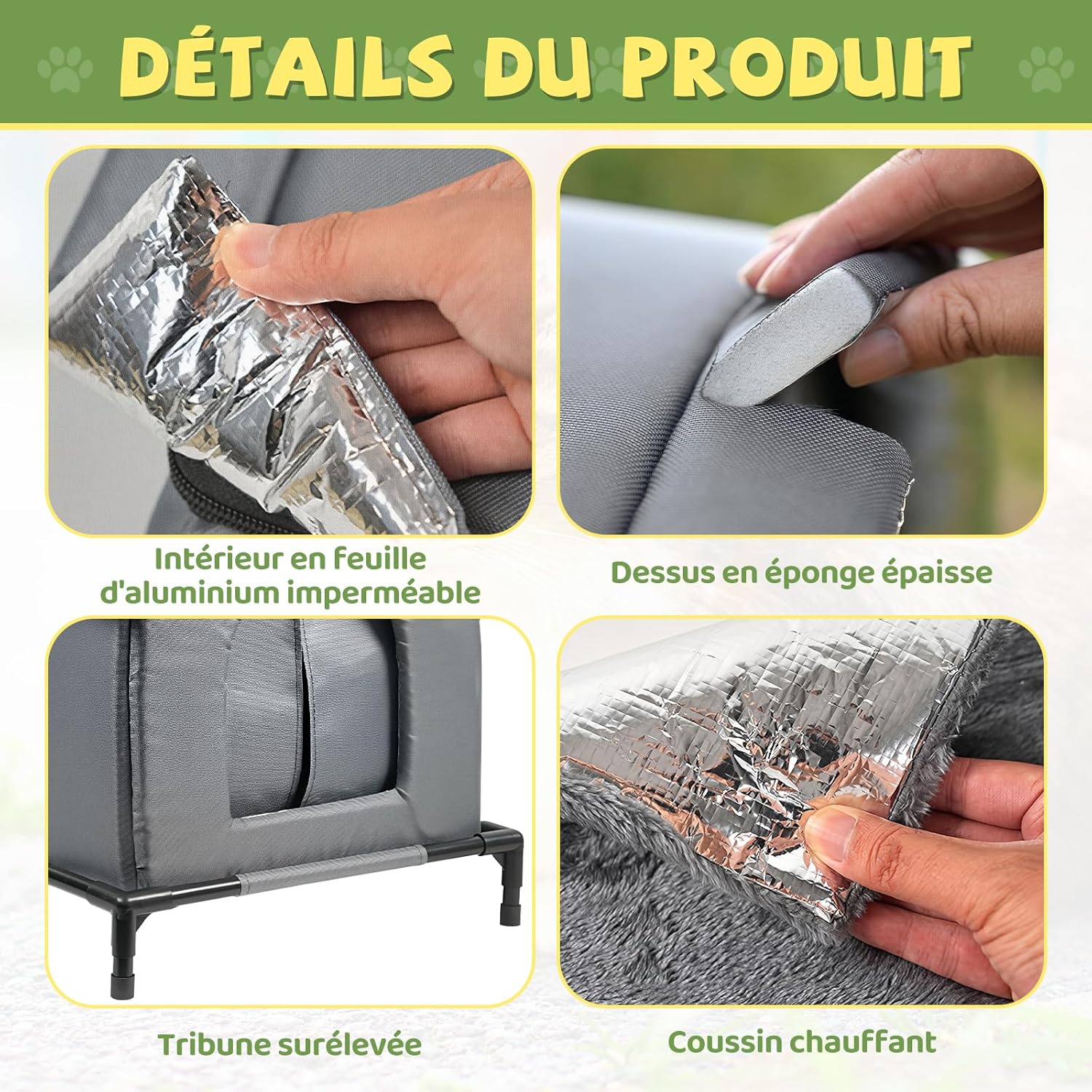 【Isolation Maximale】: Cet abri d’hiver pour chat est doté d’une triple protection (tissu Oxford, éponge, feuille d’aluminium) pour offrir une excellente isolation thermique, conservant la chaleur corporelle de votre animal même pendant les nuits les plus froides, offrant un abri vraiment chaleureux